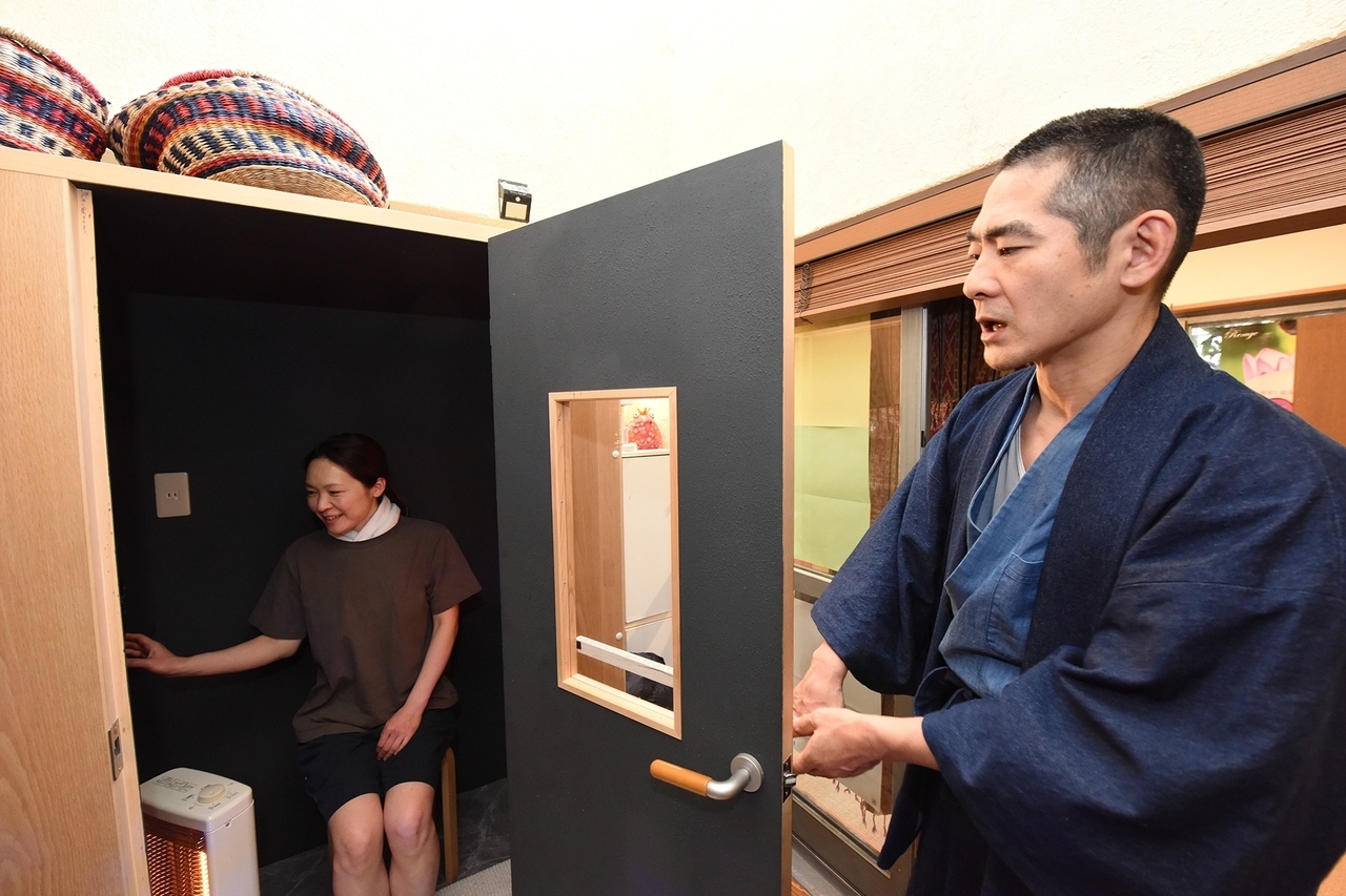 初回は龍神浴の説明を行い、ご了解が取れてから、ご案内致します。お着替えの時間を龍神浴前後のお着替えの時間や龍神浴後汗をひかせる内氣浴などに50分お取りしておりますので、全体で90分とお考えください。